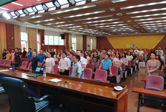 30日上午8:00,培训在经典诵读声中正式开始。全院158名全体教师(含外聘与实习生)诵读了《大学》(节选)与《青春》(席慕蓉)。师范学院院长唐松林教授作了题为《诚朴慧美为世明灯——师范学院的现在与未来》的报告。