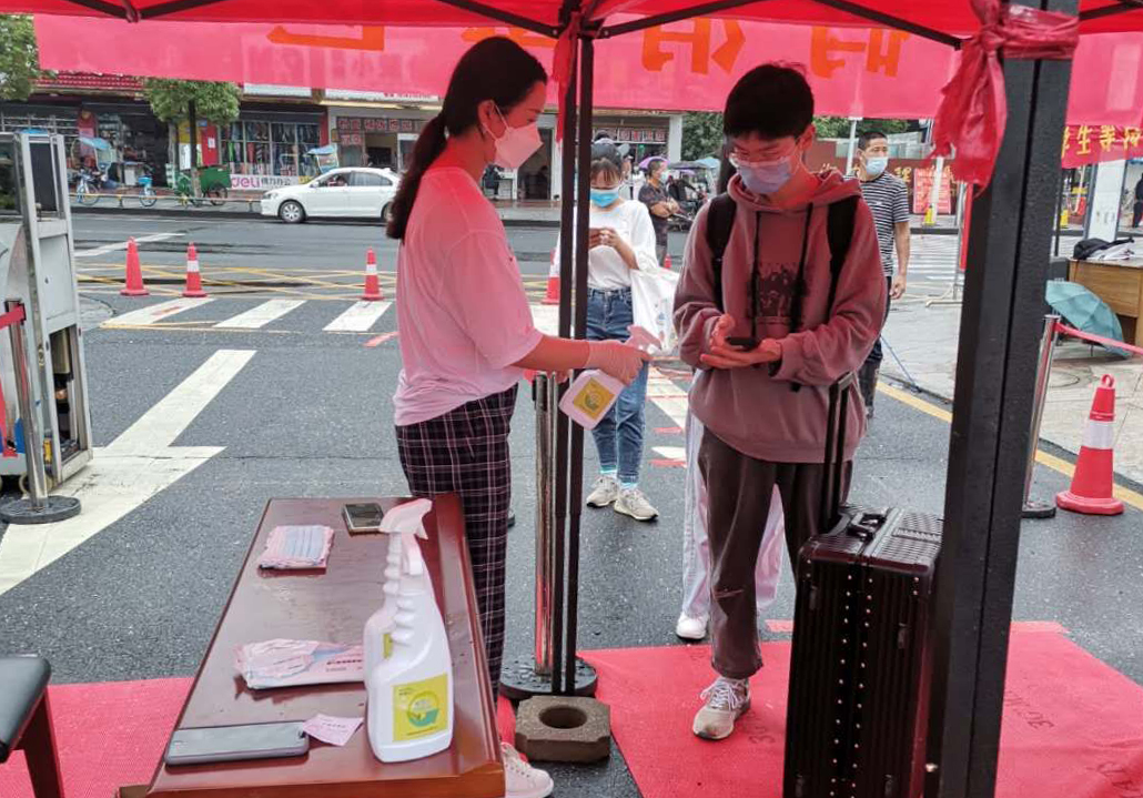 本网讯(通讯员 刘云悦)6月23日,我校师范学院2018级公费师范生结束了超长假期,返校备战转段考试。为确保将安全隐患排除在学生入校前,师范学院严格按照疫情防控的要求,组织学生在校门口进行行李消毒、出示健康二维码、抑菌洗手、更换口罩、体温检测等程序,保障学生安全入校。
