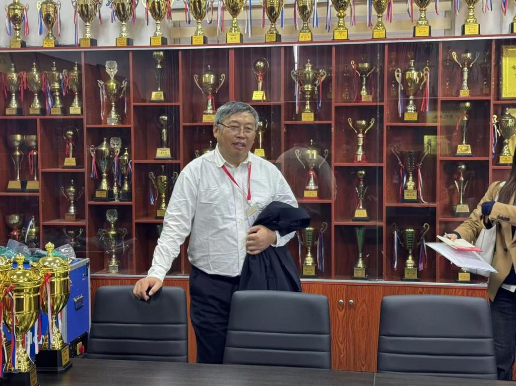 专家组步入体育学院,映入眼帘的便是学院党建文化长廊,刘晓霞书记介绍了学院的发展历程、教学成果及体育精神传承等内容。随后,专家组走进学院荣誉室,室内满墙的荣誉牌匾、奖杯和证书尽显学院辉煌历程。