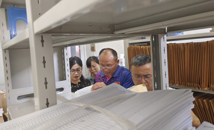 座谈会后,刘春晖对体育学院教学文档资料进行了抽检。