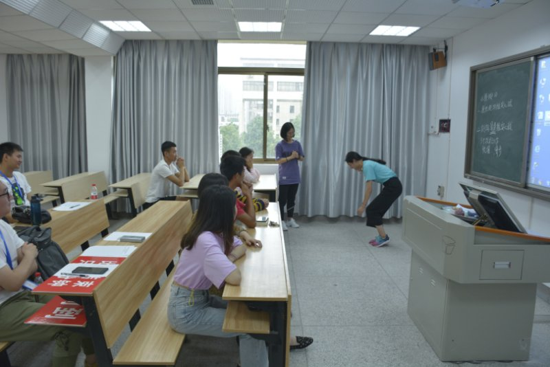 这是6月22日我校师范生教学技能竞赛的比赛现场,参赛选手包括来自各学院的师范生,比赛分为文科组、理科租、音体美综合组和学前教育组四个小组,包含九门基础学科、音体美及学前教育13门学科,设有教学设计、多媒体课件制作、教育问答、教学片段、教学板书五个环节。两个半小时的学设计和多媒体课件制作,五分钟的教育问答准备,十分钟的片段教学,通过现场抽题、现场设计、现场教学的方式,全面考察参赛选手的综合能力。