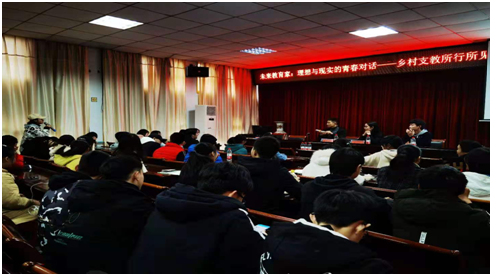 这三位老师作为师范生们的学长和乡村教育的践行者,通过PPT和视频与同学们依次分享了自己在乡村教育工作中的所见所行所思,并和同学们进行了热烈的交流。他们从不同的角度介绍了目前乡村教育的现状、所遇到的困难、自我成长的点滴收获以及选择坚持的意义与信心。老师们的感悟“选择乡村教育,不是因为它简单,而是因为它一直都很难”、“希望我们会是那抹亮光”,让同学们进一步理解了从事乡村教育工作的重要意义。