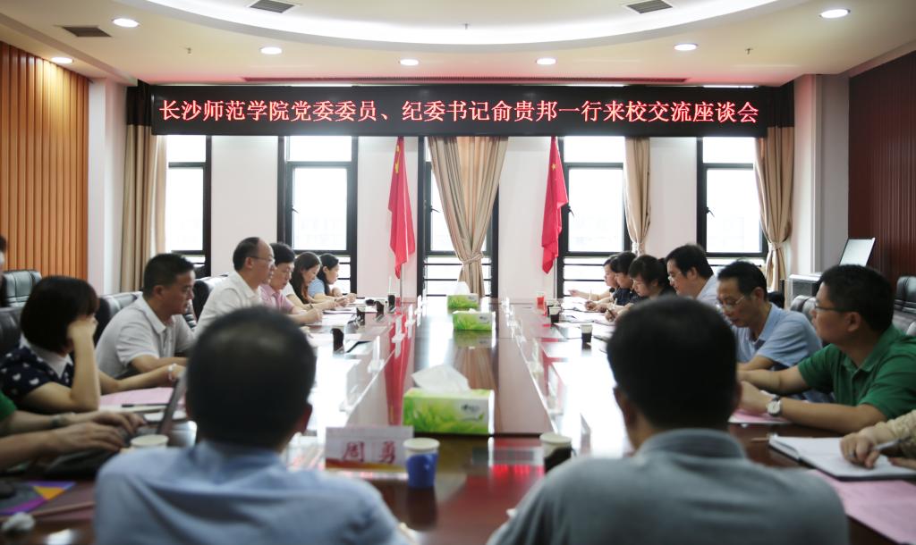 本网讯(文法学院 供稿)6月30日上午,长沙师范学院纪委书记俞贵邦一行来我校就“汉语言文学专业建设和师范生培养”有关事宜进行考察与交流。我校纪委书记郭文超在逸夫楼A704会议室接待了俞贵邦一行。我校文史与法学学院、师范学院相关负责人参加了座谈会。会议由纪委副书记兼纪委办、监察专员办主任、巡察办主任刘曙东主持。