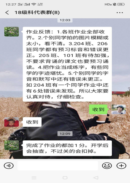 为充分保证线上教学效果,督促学生课后作业认真落实,学工办同样积极配合教学工作,老师纷纷开动脑筋,使出招数:有的督促学生坚持学习打卡、锻炼打卡,有的培养学生干部自我管理、有的采取一对一联系重点学生等,目的在于引导学生按时作息,积极完成线下作业,认真参与答疑解惑,针对于久居封闭室内,学生可能会产生的系列心理、学习问题,同样建立了重点台账,对于可能遭受疫情的个别家庭重点关注其资助问题,不让任何一个学生在疫情中掉队。